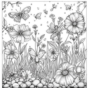 Varázslatos virágos kert tündérekkel, Johanna Basford stílusban