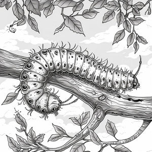 #lárva #ág #színezés #színezőkönyv #illusztráció #részletes #természet #rovar #fa #oldal