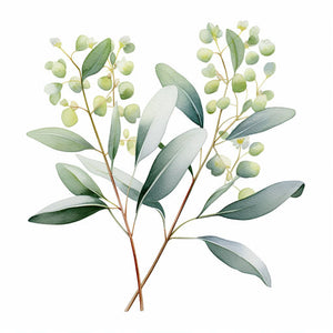 Eukaliptusz clipart olajfestés stílusban, fehér háttérrel