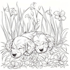 #minimalista kiskutyák #álomszerű környezet #Ruben Ireland stílus #színezőkönyv oldal