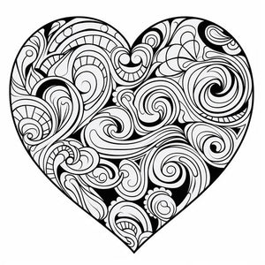 Fekete-fehér szív mintázat színezéshez, lenyűgöző színes tájképek stílusában, rtx bekapcsolva, megrázó, lekerekített