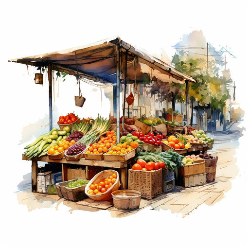 Piaci klipművészet olajfesték stílusban, fehér háttérrel