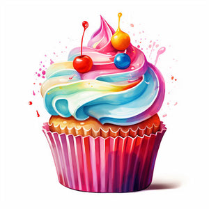 Születésnapi cupcake illusztráció olajfestés stílusban, fehér háttérrel