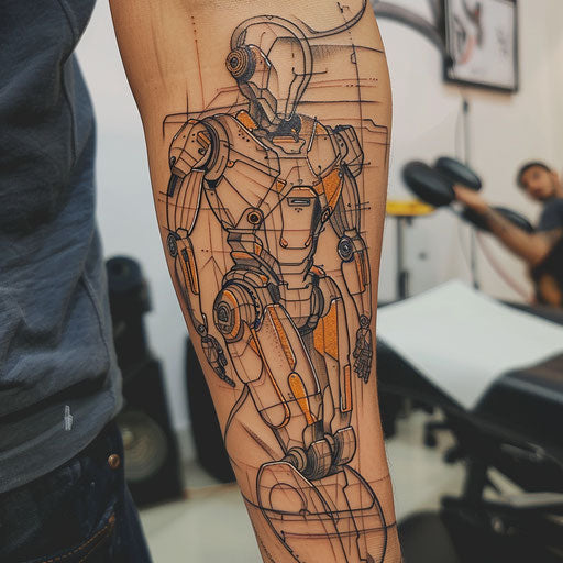 Kontúr tetoválás egy robotról, Humberto Ramos stílusában