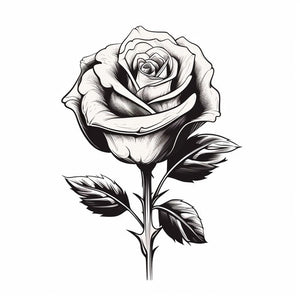 Rózsa motívummal díszített fekete-fehér tetoválás