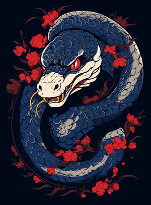 #kígyó #egyszerűsített vektorgrafika #tetoválás #kobra #őskori #világos tenger #sötét indigó #sōsaku hanga #tetoválás-ihlette #yankeecore