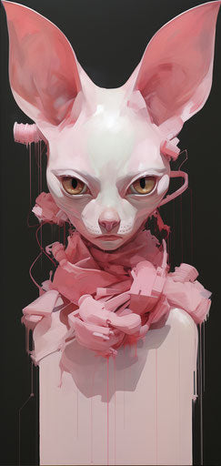 Cica nagy fejjel, Rick Owens stílusban, nőies testtel, torz formákkal, világos rózsaszín és világos borvörös, normál David, nagyszülői alap, galambalap 19:40