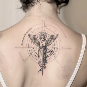 Szent Mihály mandala tetoválása tiszta fehér hátterű