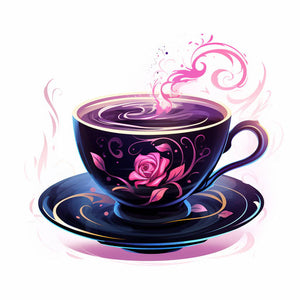Teás csésze illusztráció Chiaroscuro Art stílusban, fehér háttérrel