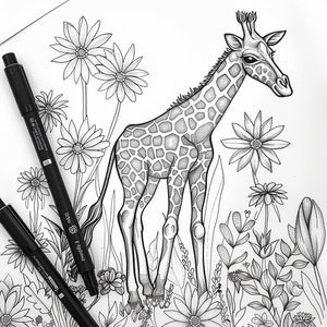 #zsiráf #virágosmező #színezőkönyv #művészet #teaganwhite #festés #szeszélyesállat #kreatív #színezés #szórakozás