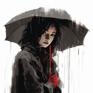 Rain illustration in the style of Chiaroscuro Art, on white background