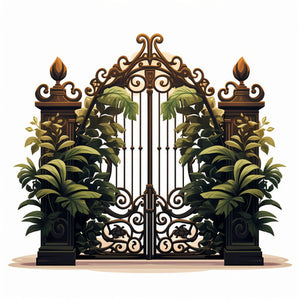 Gate in the style of Chiaroscuro Art, on white background