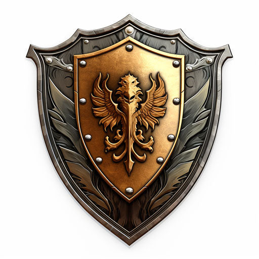 Shield clipart in the style of Chiaroscuro Art, on white background