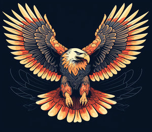 Moving eagle with spread wings in colorful style