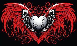 Winged heart in graffiti style, high contrast, free-flowing lines