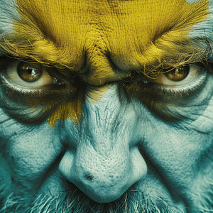 Angry face with eyes open, AP photo style, discreet detail, non-representational