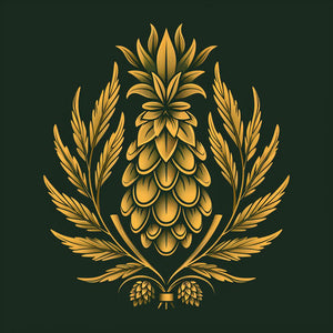 Stylized craft brewery logo with barley and hop emblem
