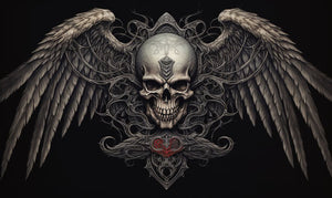 Skull and wings of a viking, detailed engraving style, commissioned, 3840x2160, RTX on
