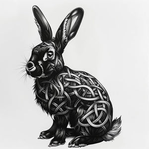 Cultural flat tattoo sketch of a black rabbit with traditional Celtic knots