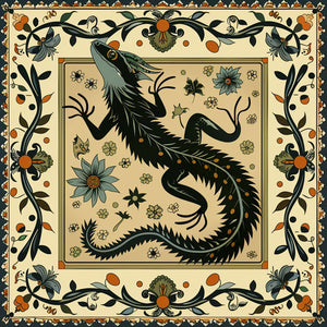 #MedievalTapestry #ClipartStyle #FlatTattooSketch #Lizard #OrnateBorders #MutedColors