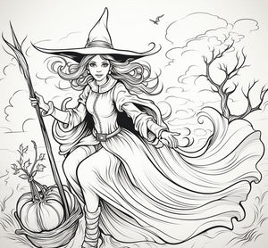 #witch #broom #coloringpage #captivating #stencils #linedrawings #pictorial #29:27
