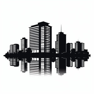 Minimalist style building silhouette on white background