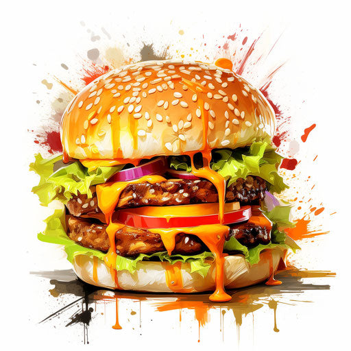 Cheeseburger clipart in Impressionistic Art style, on white background