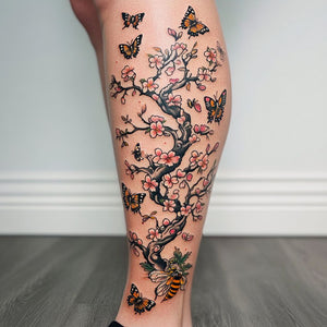 #tattoo #tree #flower #wonderful #butterflies #bees #lowerleg #cherryblossom #style #nature