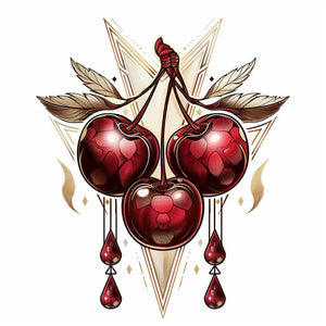 #cherry tattoo #art deco design #symmetrical patterns #golden accents #white background #luxurious tattoo #aesthetic tattoo #vintage style #artistic tattoo #inspiring tattoo