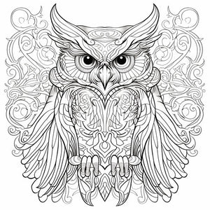 #ColoringPage #Owl #Monochromatic #LinearElements #Avian #Anemoiacore #Expansive