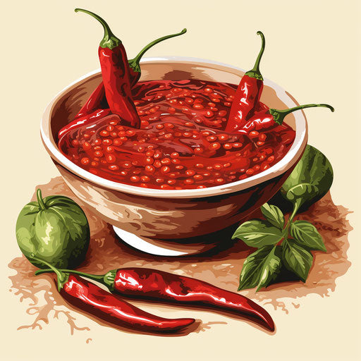 Chili peppers illustration in the style of oil painting, on white background