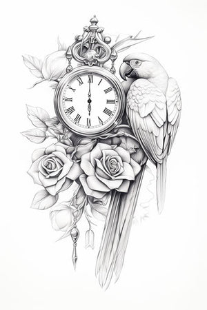 #blackandwhitedrawing #clock #rose #feathers #meticulousstyle #flatdesign #limitedshading #art #creation #artwork