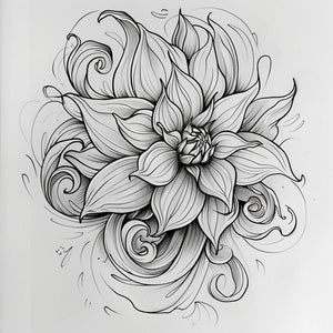 Art nouveau style dahlia tattoo sketch with flowing lines