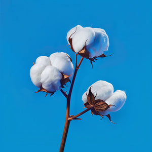 On a flat, royal blue background, a photo realistic cotton clipart shines with enhanced vibrancy and clear contours