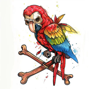 #piratetattoo #skullandcrossbonestattoo #colorfulparrot #tattoo #whitebackground #pirate #traditionaltattoo #colortattoo #bodyart #parrot