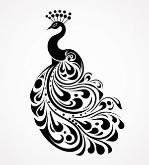 Peacock silhouette for coloring pages, repetitive dotwork, whimsical folk-inspired, lively and energetic