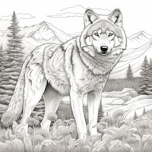 #Wolf #Mountains #ColoringBook #RealisticPerspective #Naturecore #Captivating #Realistic #Anemoiacore #Caninecore #Naturalism