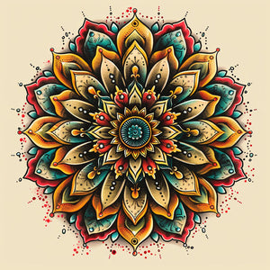 Ornate mandala with intricate patterns and burst of vibrant colors