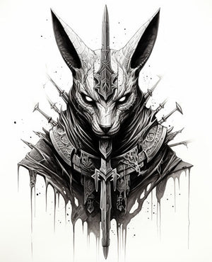 Tattoo of Egyptian enemy with sword, detailed sci-fi style