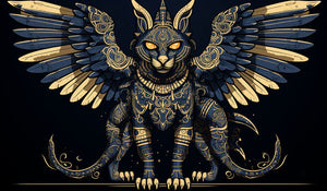 #WingedBull #Yokai #EngravedOrnaments #Columns #Totems #AbstractCats #MocheArt #Commission #MidJourney #Egypt