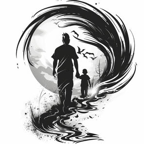 Father and Son Journey: Detailed Path Tattoo Design on White