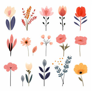 Minimalist style flower illustrations on white background