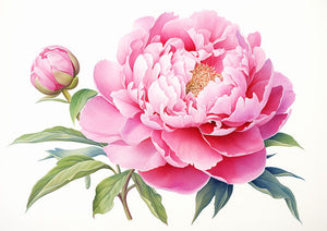 Pink peony on white background, angura kei style