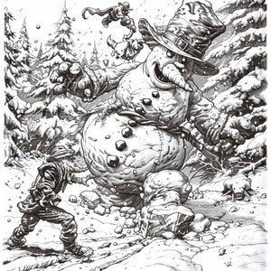 #Snowman battle #Heroic poses #Mark Schultz #Coloring book page