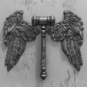 #Judgement #Illustration #DetailedWings #MonochromePalette #RealisticStyle #RandomBackground #GavelClipart #Art #Detail #Photography