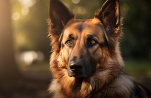 CJ's German Shepherd Dog, distinct facial features, light red and dark amber