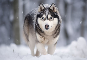 Siberian husky walking in the snow