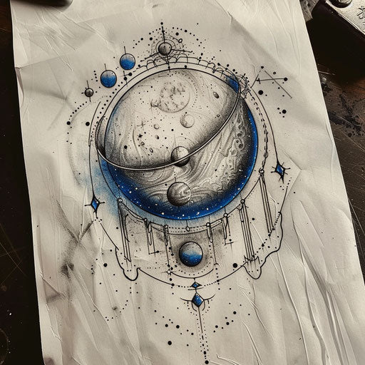 #celestialtattoo #halfmoon #smallplanets #mysticalblues #clipartstyle #moonphase #tattooartist #mysticalart #tattoodesign #sketch