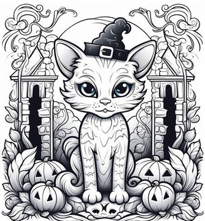 #Halloween coloring pages #haunted house #black cat #Henryk Gotlib style #Lisa Frank #poignant 27:29 #Halloween accessories #kids #drawing #coloring