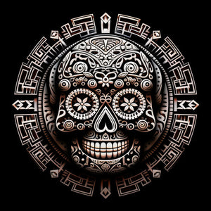 Tribal mandala pattern with skull in stencil-based style, kushan empire